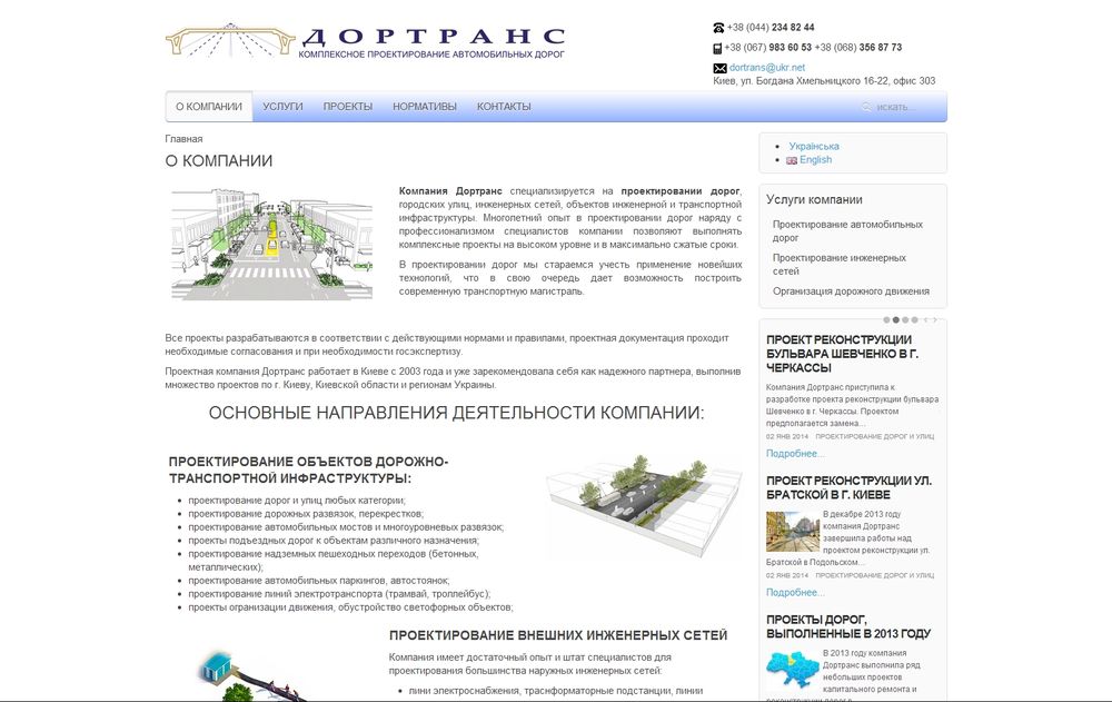 Компания Дортранс специализируется на разработке проектов для строительства и реконструкции автомобильных дорог, городских улиц, парковок и площадок, внешних инженерных сетей.