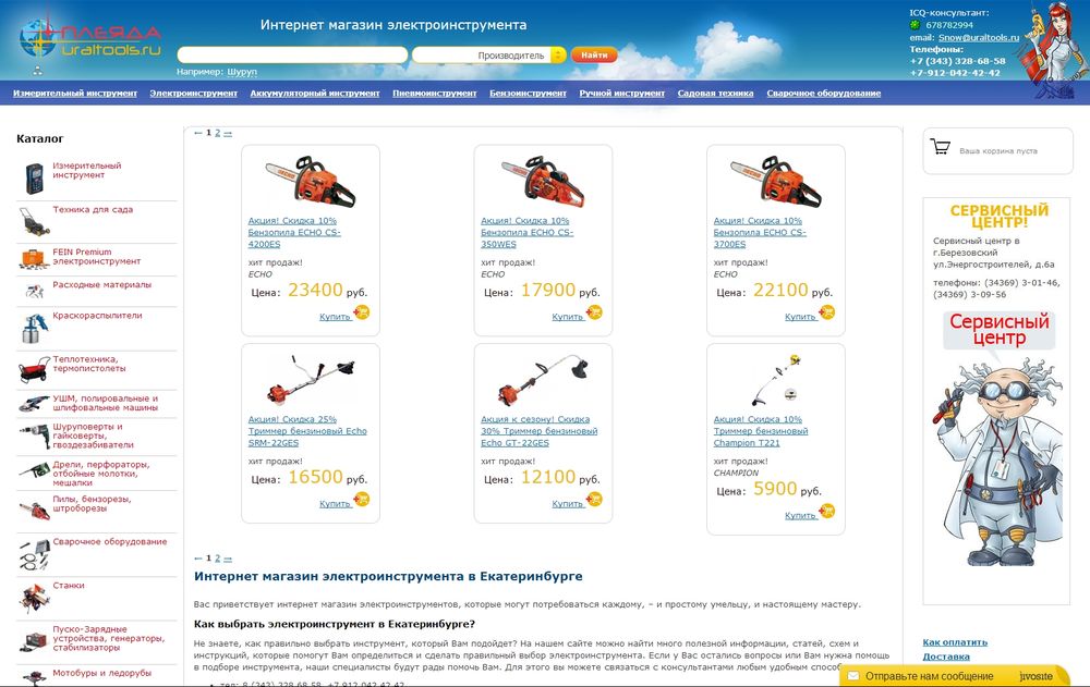 Инструмент, вспомогательные материалыБолгарка ЕкатеринбургРоссия - ЕкатеринбургНа сайте компании можно найти и заказать через интернет магазин электро и ручной инструмент, расходные материалы: перфораторы Makita, Bosch, Hitachi; дрели, шуруповерты, угловые шлифмашины, электролобзики, электрорубанки, дисковые пилы, торцовочные пилы, фрезеры и другой инструмент ведущих мировых производителей Metabo, Makita, DeWalt, Bosch. Компания расположена в исключительно удобном месте для клиентов, в непосредственной близости от крупных транспортных развязок ЕКАДа. Доставка инструмента по городу Екатеринбург и Свердловской области бесплатно.