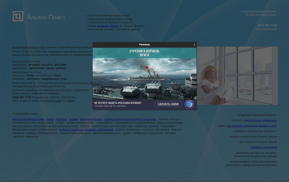 Окна, стеклопакеты, витриныКомпания «Альянс-Пласт». Украина, Киев. т. (044) 504-9050Украина - Киевметалопластиковые окна · двери · балконы · лоджии · балконные блоки · отделка балконов внутренняя и наружная · отделка откосов · комплектация окон: подоконники · отливы · антимоскитные сетки · стеклопакеты · однокамерные и двухкамерные · енергосберегающие · декорирование стеклопакетов фальшперемычками · шпросы · комплектация для монтажа окон: герметики · крепеж · тонировка и бронировка стекол и стеклопакетов · роллеты защитные механика и автоматика · ворота секционные, откатные, распашные · ворота гаражные, уличные, промышленные · жалюзи горизонтальные · жалюзи вертикальные · киоски · мобильные сооружения · бытовки · торговые павильоны ·